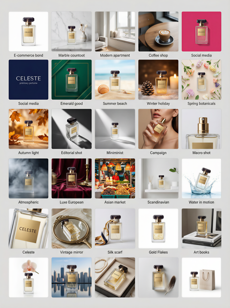 Our AI image generation service produces brand-consistent content at scale: product photography, seasonal campaigns, market adaptations, and social media assets. All optimized for your formats, markets, and platforms.